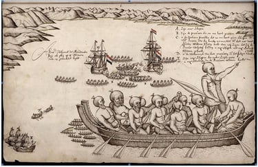 The first European impression of Māori,at Murderers’ Bay in Abel Tasman’s travel journal (1642).