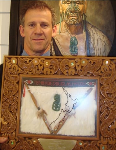 Douglas was GIFTED the Maori Hand Caved Plaque: